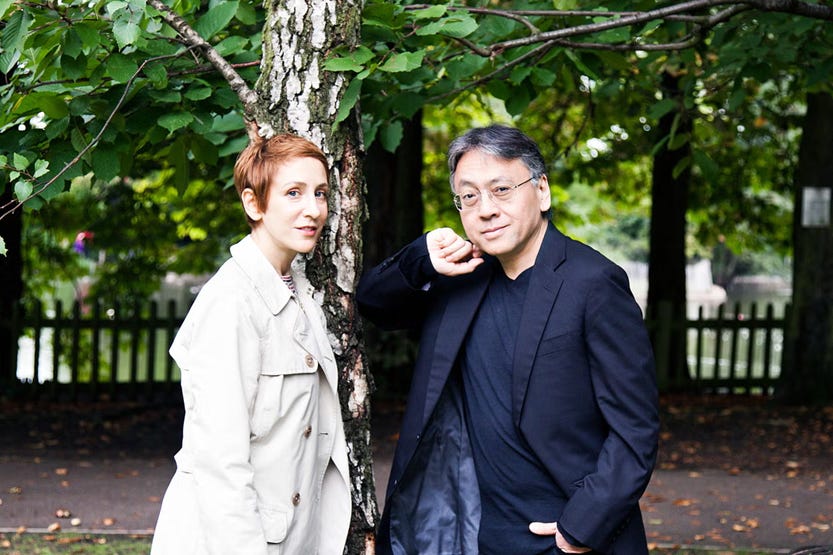 Now it’s time to reveal another link in the chain: Kazuo Ishiguro is a big Bob Dylan fan! When he was awarded the 2017 Nobel Prize in Literature, the year after Dylan’s controversial selection, Ishiguro was quick to thank not only the Swedish Academy but also Bob Dylan. The day of the announcement, he told journalist Anita Singh that Dylan “was the single greatest hero for me when I was growing up. Without Dylan’s words and music, I probably wouldn’t have been a writer.”