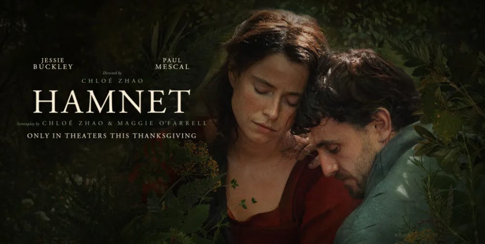 After submitting final grades for the fall semester in mid-December, I treated myself to a matinee screening of Hamnet. I’ve taught Maggie O’Farrell’s tremendously moving novel a few times, so I had been eagerly awaiting director Chloé Zhao’s film adaptation.